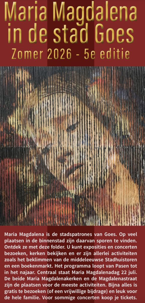 15.30 u. Carillonconcert stadsbeiaardier Rien Donkersloot met o.a. (na de klokslagen van 16 uur) de op Maria Magdalena geïnspireerde compositie voor het Goese carillon door stadscomponist Anne-Maartje Lemereis